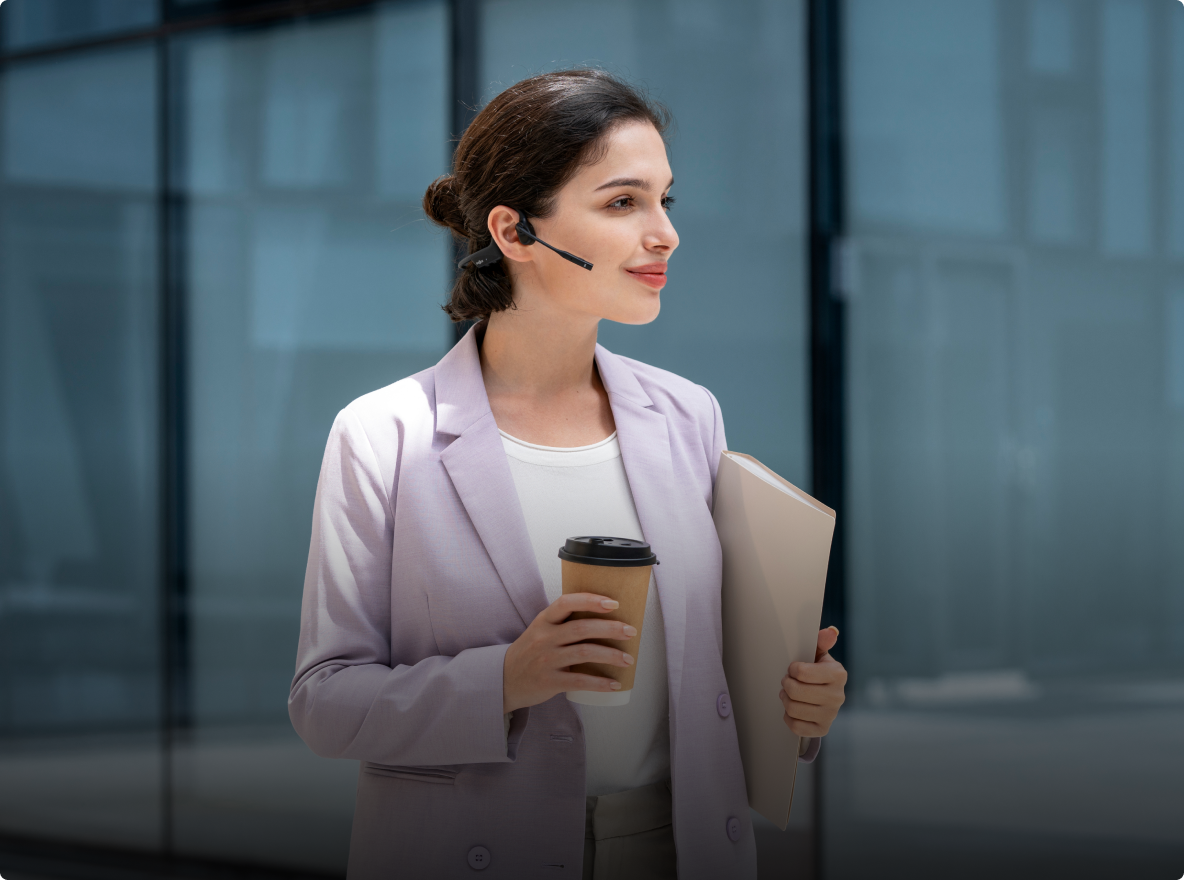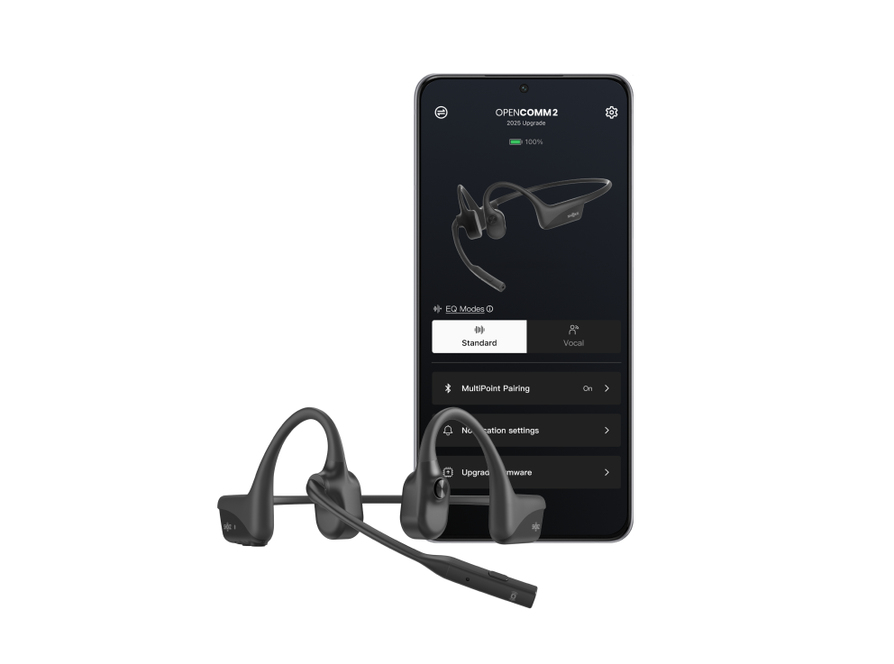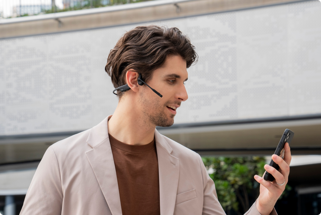 A diferencia de los auriculares tradicionales que cubren tus oídos y te aíslan de tu entorno, el diseño open-ear de los OpenComm2 te mantiene conectado con el mundo sin comprometer la comodidad ni la calidad del audio.