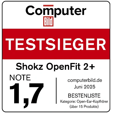 Die OpenFit 2+ bieten Ihnen die DualBoost™-Technologie, eine Branchenneuheit von Shokz. Mit zwei einzelnen Lautsprechern, einer extra großen Niederfrequenzeinheit für tiefe, kraftvolle Bässe und einer unabhängigen Hochfrequenzeinheit für strahlende Höhen, liefern die OpenFit 2+ einen lebendigen und dynamischen Sound. Erleben Sie die Kraft tiefer Bässe, klarer Mitten und Höhen sowie außergewöhnliche Klangdetails.