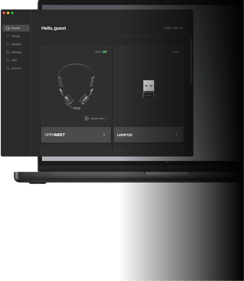 Nota: Los OpenMeet requieren el adaptador inalámbrico Loop120 para usar Shokz Connect.