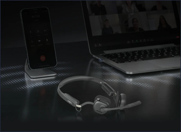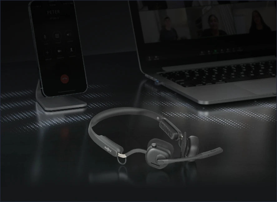 El diseño open-ear exclusivo de Shokz te permite mantener la conexión con tu trabajo y con tu entorno, desde tus compañeros hasta los ruidos del hogar.